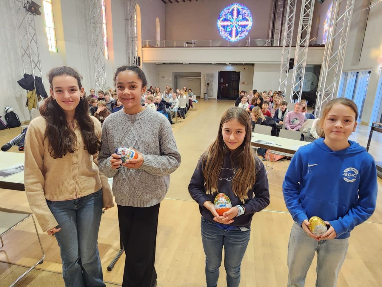 - die 5., 6. und 7. Klassen geben symbolisch ihren Fingerabdruck ab, woraus ein Peace-Zeichen entstehen wird, das dauerhaft im Schulgebäude ausgestellt wird (SMV).